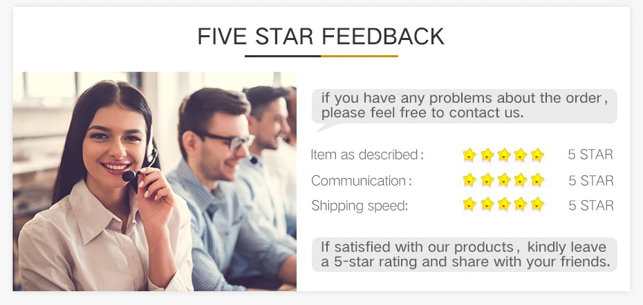 1. Your confirmation will be highly appreciated after receiving the items. Once you have received the product, hope you could leave us a positive feedback(4 or 5 stars).